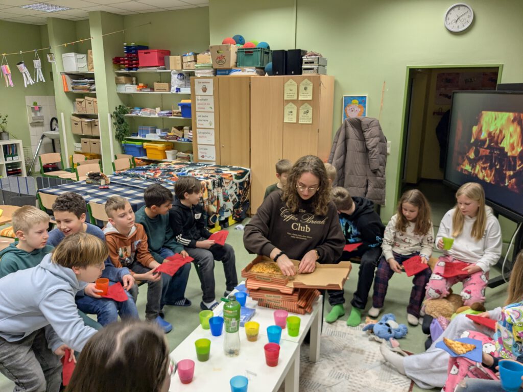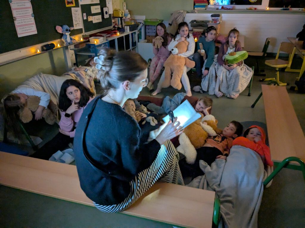 Ein schöner Start in einen Tag ganz im Zeichen des Lesens! In ihren jeweiligen Gruppen hörten die Kinder verschiedenen Büchern zu und setzten die Geschichten anschließend in passenden kreativen Kunstaktionen um.