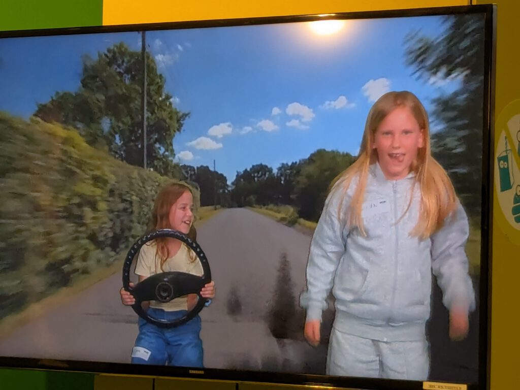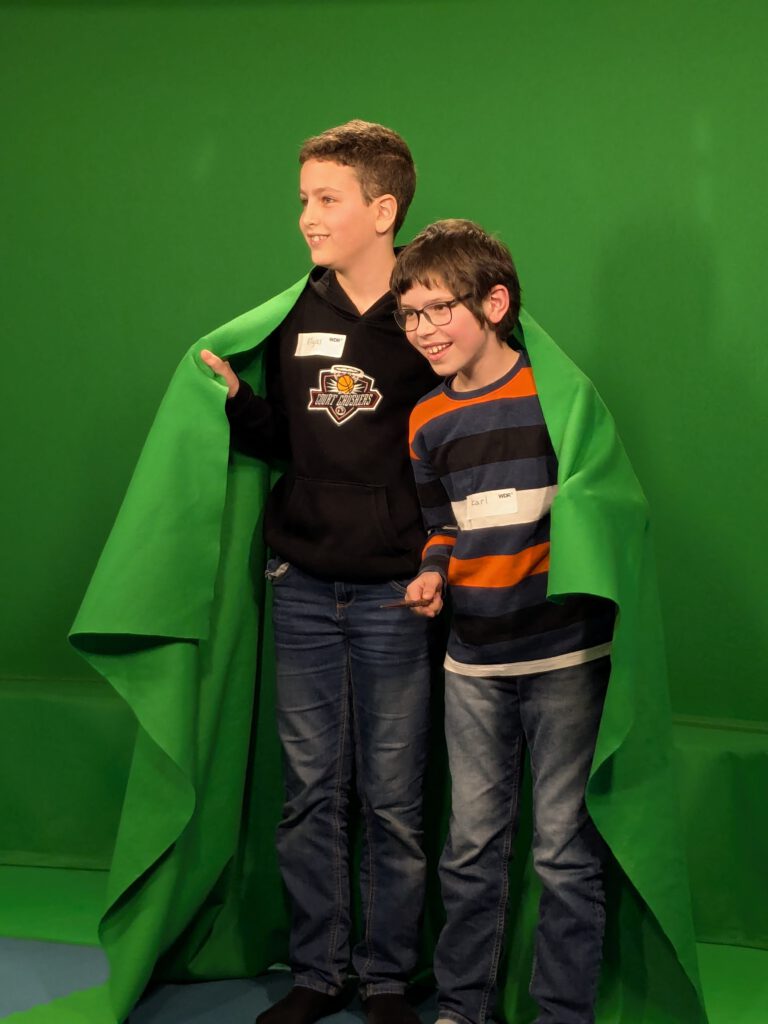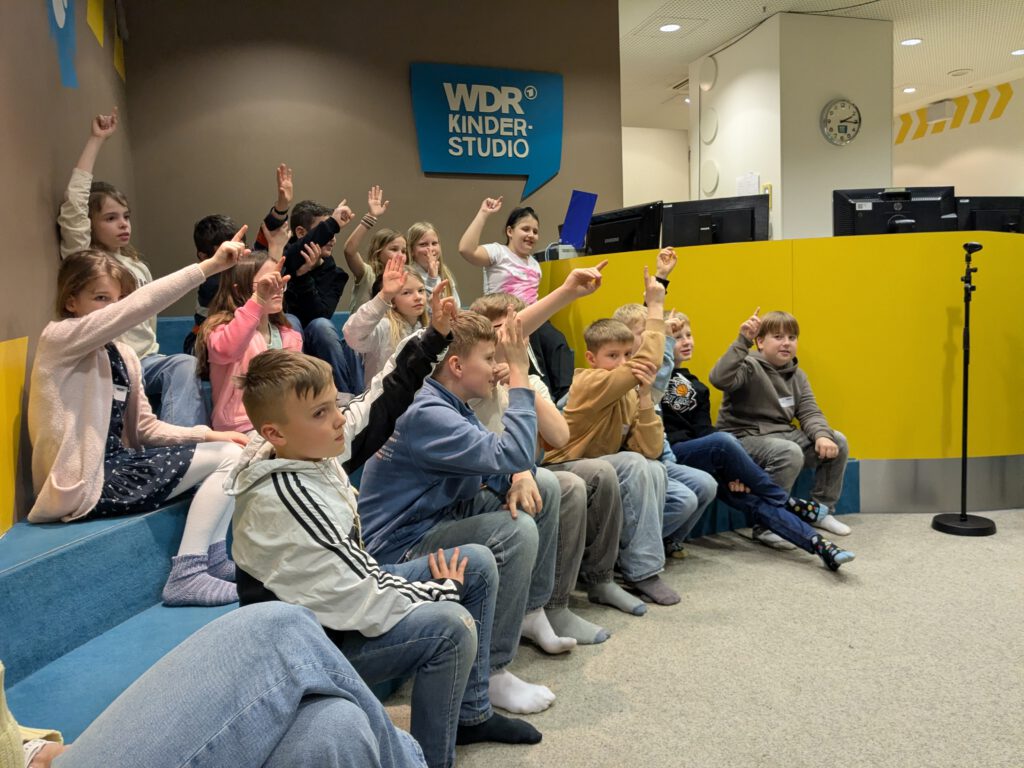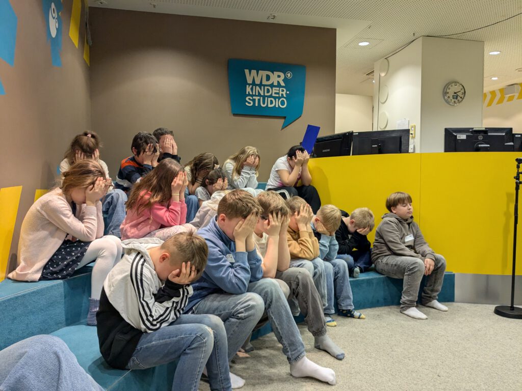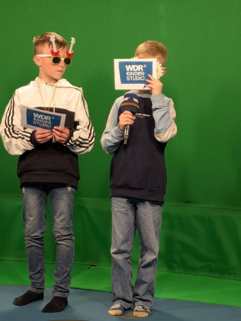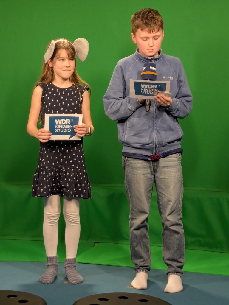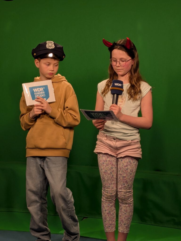 Einmal über die Hohenzollernbrücke laufen, Dinosauriern begegnen oder mit dem Auto über eine Schotterpiste fahren – im WDR-Kinderstudio ist all das möglich! Mit der Greenbox lassen sich unterschiedliche Hintergründe in eine Filmszene zaubern. Für die Kinder war dieser Workshop ein spannender Einstieg in die Welt der Medien.