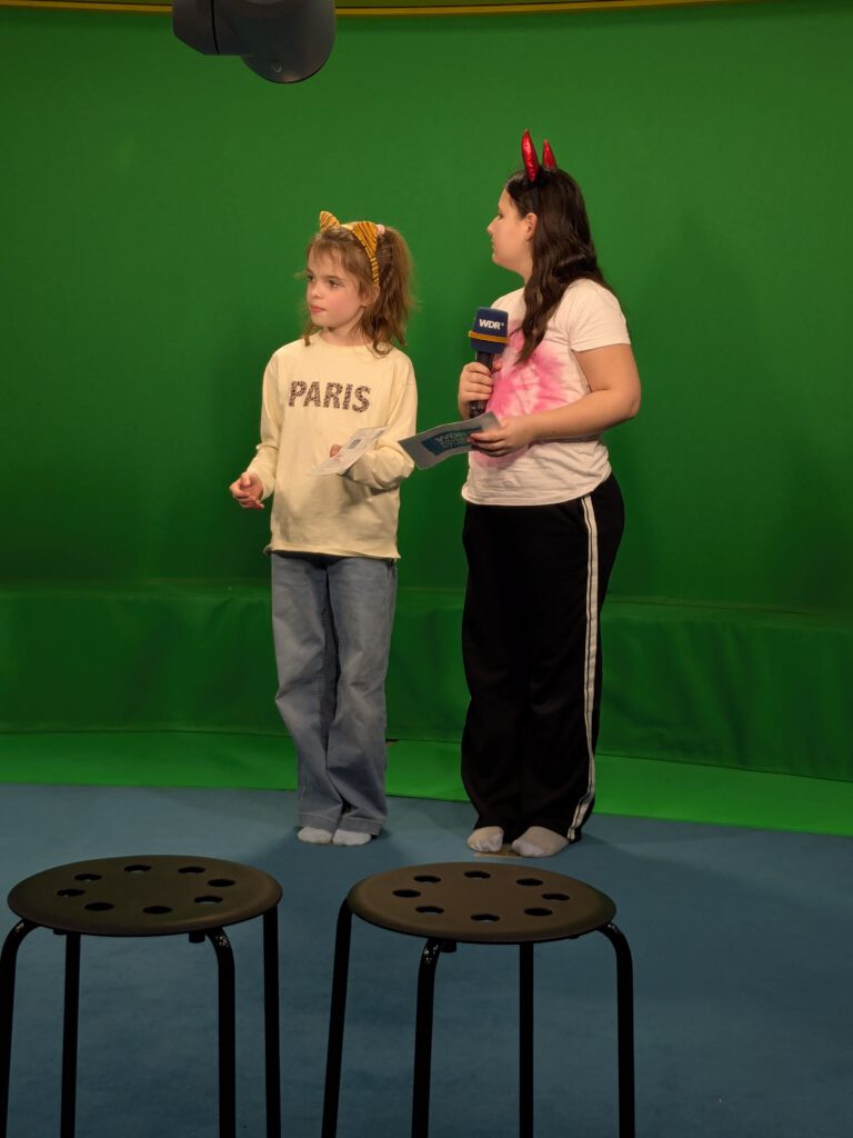 Am Ende konnten alle gemeinsam das Ergebnis anschauen, eine eigene Nachrichtensendung! Besonders schön: Wir durften die Aufnahme auf einem USB-Stick mit nach Hause nehmen.